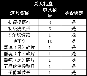 夏天礼包,能够随机开出以下道具中的一种: