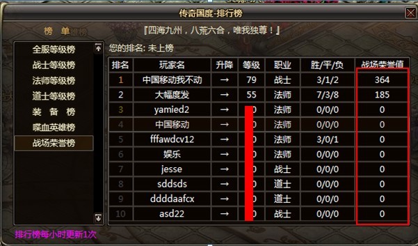5.修正了战场荣誉排行榜显示错误