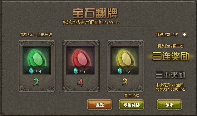 2. 花费8金币可翻牌升级,直到翻出满意的组合后再领取奖励,并且有10次双倍奖励机会