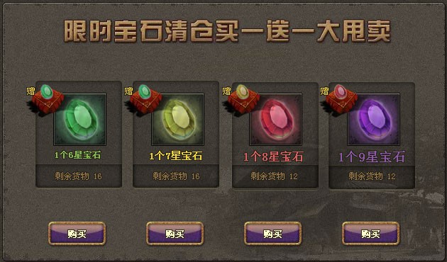 活动时间内,宝石将以优惠的价格倾销大甩卖。